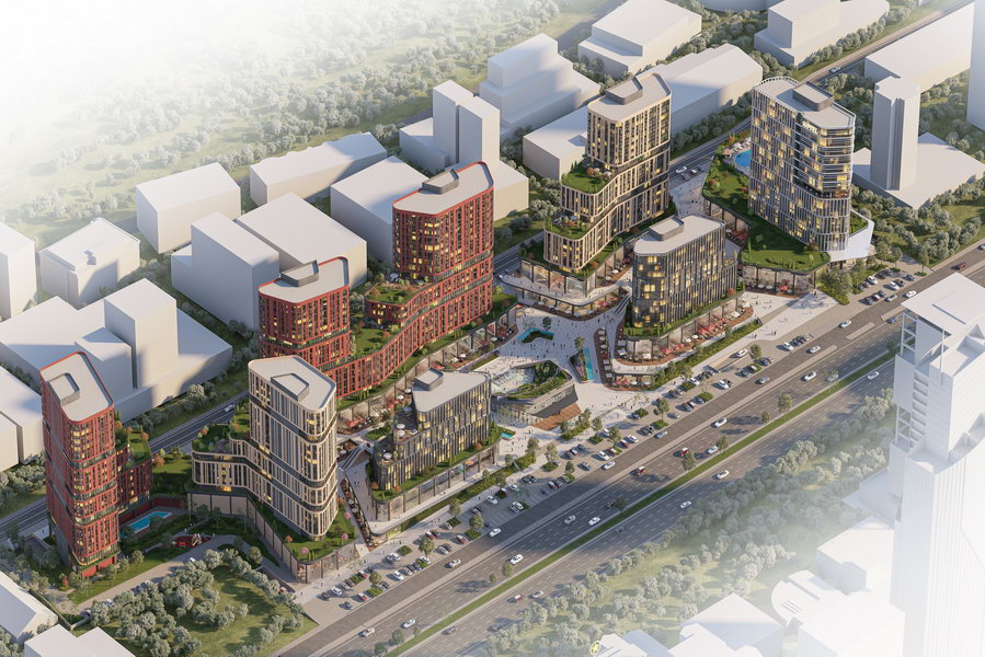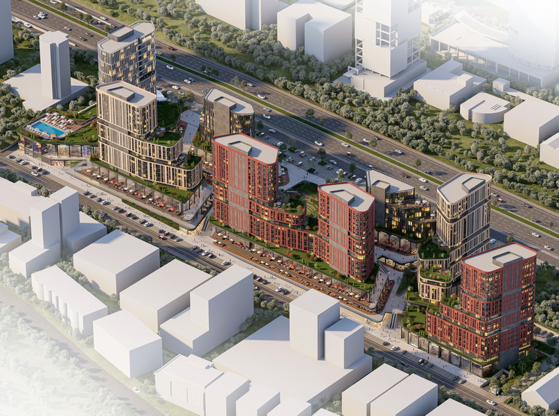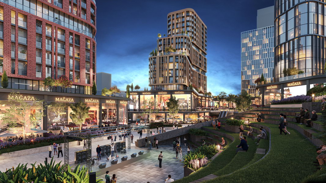Yakın çevredeki mevcut yapıların yapıldıkları dönem ve fonksiyonları gereği oluşturdukları dokudan sıyrılarak hem mimari formlar hem de malzeme tercihleri ile yeni bir kentsel doku oluşturmak projenin ana hedeflerinden biri olmuştur. Bu bağlamda yakın çevrenin dominant yapıları olan Nev 201, Koluman ve Taurus AVM gibi kübik yapılardan form ve malzeme olarak ayrılan tasarım yaklaşımı yenilikçi bir mimari dil sunarak insanları yaşam ve alışveriş alanlarına davet etmektedir.