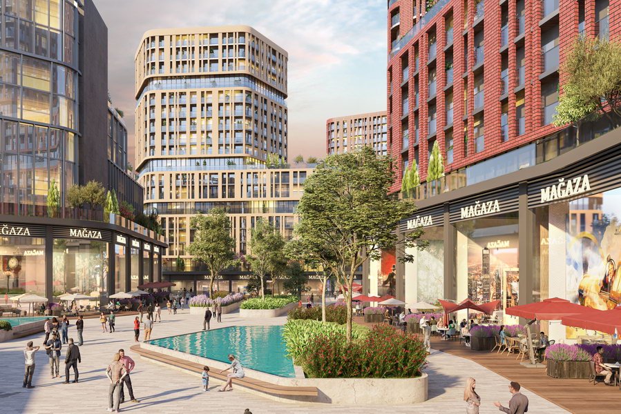 Karma kullanım ruhuna uygun olarak ticari birimler ve bloklar arası etkileşimin 24 saat canlı olması adına ofis ve rezidans blok girişleri meydanlardan verilmiştir. Ayrıca konut tipolojisine bağlı olarak arazinin kuzey bölümündeki bloklara kendilerine ait güvenlikli bir açık alan ve güvenlikli bir site imkânı sağlanabilmektedir.
